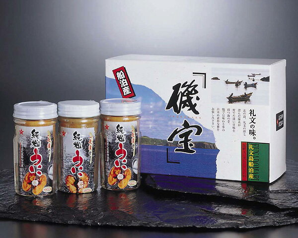 北海道礼文島(船泊)特産宝うにエゾバフンウニ缶3個セット(100g×3) 価格: 11,400円 レビュー評価: 0.0 レビュー数:0 商品名 宝うに 内容量 100g×3 原材料名 エゾバフンウニ・食塩 お召し上り方 おむすび・お茶漬け・パスタ等に入れて、又、お酒の肴としてもお召し上がり下さい。 常温商品 日本最北端の島、礼文島の名産品 ? 心に残るこの一品 ? 究極のウニ缶! 礼文島名物といえば、「船泊(ふなどまり)の宝のウニ缶」でございます!今も昔も変わら ぬこのパッケージがトレードマーク。もちろん、お味の方も、絶品。多くの方をとりこにさせる宝ウニは礼文島の豊かな海が育んだ珠玉の味です。 実は、一缶 (100g入り)には、生ウニを贅沢に約200g?300gを蒸して使用しており ます。ウニの旨みが凝縮されております贅沢な Supported by 楽天ウェブサービス |